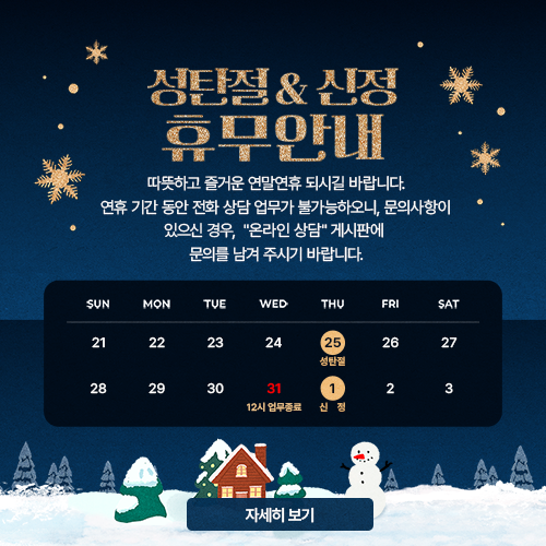 【공지】성탄절 휴무 및 종무식 안내